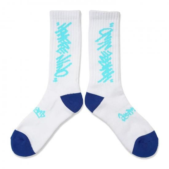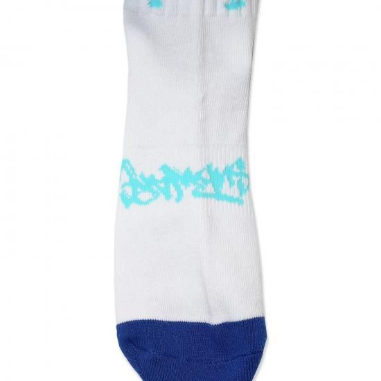 上端、裏にスペシャルロゴが入ったロング丈のスケートソックス。