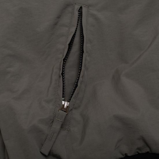 耐水性ナイロン素材のボンバージャケット。